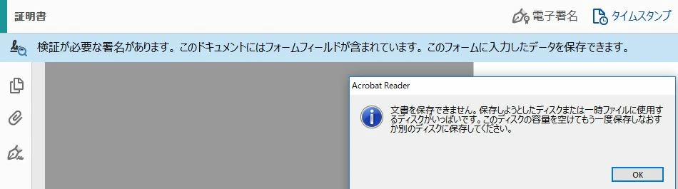 AcrobatReaderDC無償版にてタイムスタンプの2回目以降付与ができません。