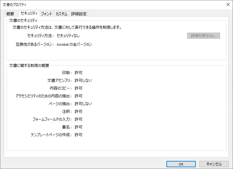 ・ファイルの 文書プロパティ - 文書に関する制限の概要 – 注釈 は“許可”になっております。