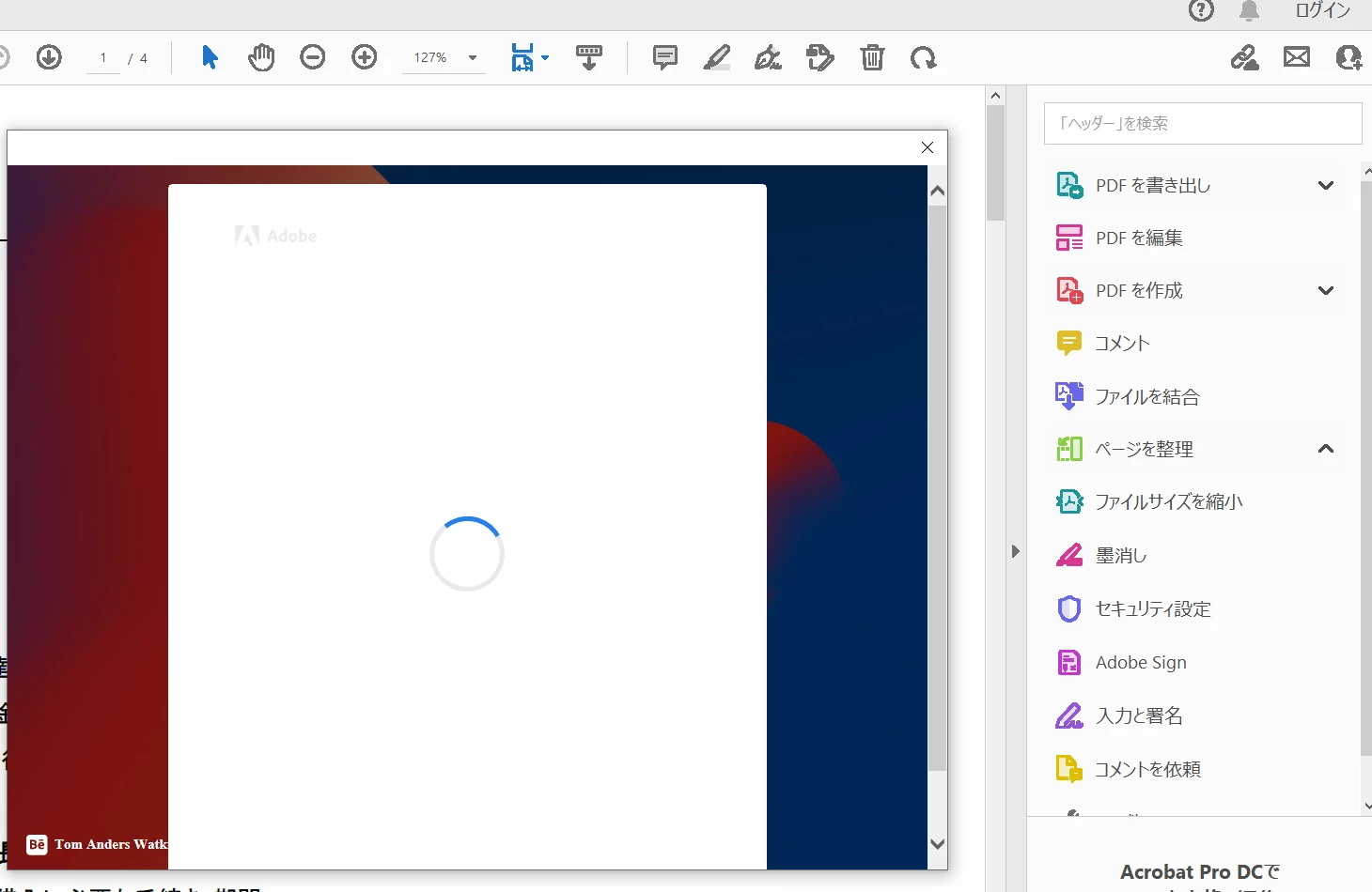 Adobe Acrobat Reader DC(バージョン:2021.007.20088)を使用していますが、起動時に必ず別ウィンドウで広告?のような画面が表示されます。