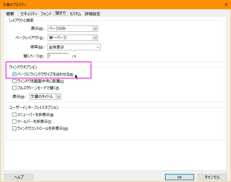 特定のPDF(例えば、 https://cdn-cms.azureedge.net/getmedia/c2eebff0-2c31-4ec5-8df9-9ee17ca532cf/moxa-iologik-e1200-series-datasheet-v2.1-jpn.pdf )をAdobe Reader DCで開いた時に、ページレイアウト、拡大率(倍率、ズーム)、Readerのウィンドウのサイズと位置が強制変更されてしまう現象を無効化したいです。