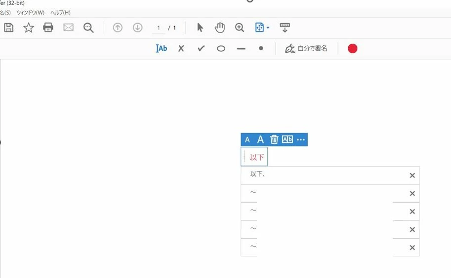 PDF化した資料にメモ書きなどをテキスト入力するのですが、入力した際、テキストボックスの真下に予測変換の候補がいくつか表示されていました。