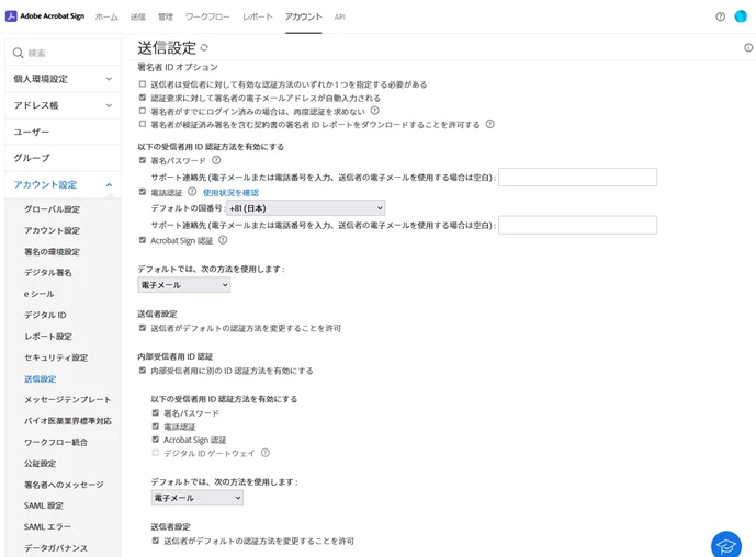 Acrobat Sign 14.1 のリリースでは、問題番号 4427761 が解決され、アカウント設定やグループ設定で設定した署名者の ID 認証方法がワークフローに正しく反映されるようになりました。
