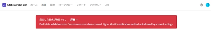 Acrobat Sign からワークフローを送信する際にエラー Draft state validation error. となる