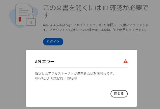 Acrobat Sign の署名依頼リンクを開くとAPIエラー (INVALID ACCESS TOKEN) が発生する