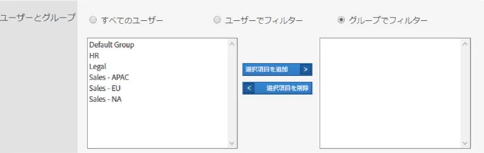 このパラメーターを使用すると、特定のユーザーまたはグループに関するレポートを実行できます。どちらかについて 1 つまたは複数を選択したり、アカウントのすべてのユーザーに対するレポートを実行したりできます。