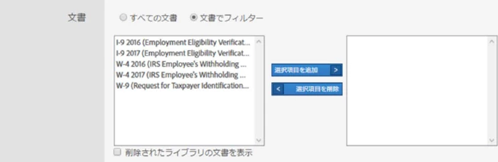 特定の文書を選択して、このオプションでレポートに含めることができます。このフィールドにリストされる文書は、アカウント全体で使用されるライブラリ文書です。個々の 1 回限りの文書は、ここにはリストされません。