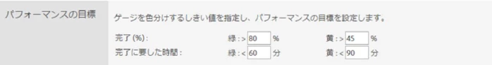 パフォーマンスの目標表示を使用して、パフォーマンスのしきい値を設定できます。パフォーマンスを反映するゲージが、結果のレポートに表示されます。