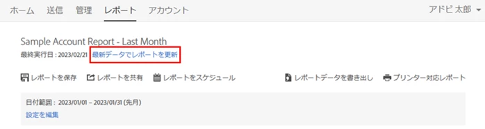 このリンクをクリックすることは、ページを更新するのに似ています。新規レポートには、最近のトランザクションおよびアクティビティが含まれます。