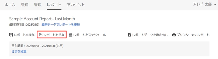 共有を使用すると、レポート結果を別の人に送信できます。必要なのは、電子メールアドレスとメッセージを入力することだけです。