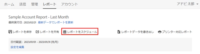 このレポートのスケジュールを設定すると、定義した頻度で同じパラメーターを使用して実行します。