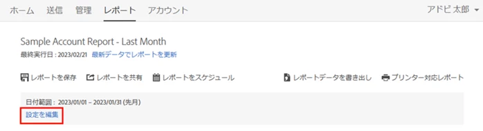 このリンクをクリックすると、レポートの設定済みパラメーターが表示され、編集が可能になります。