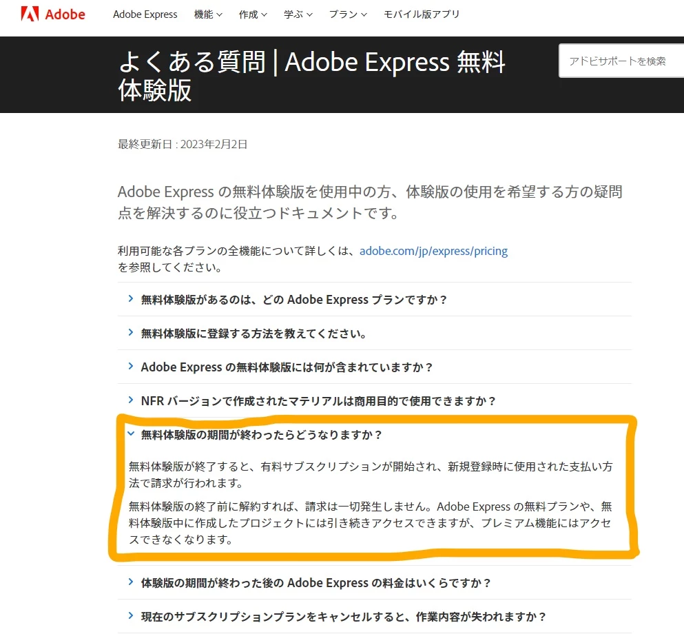 現在のAdobe Expressのスクリーンショット部分のみ、切り抜かせていただきました。