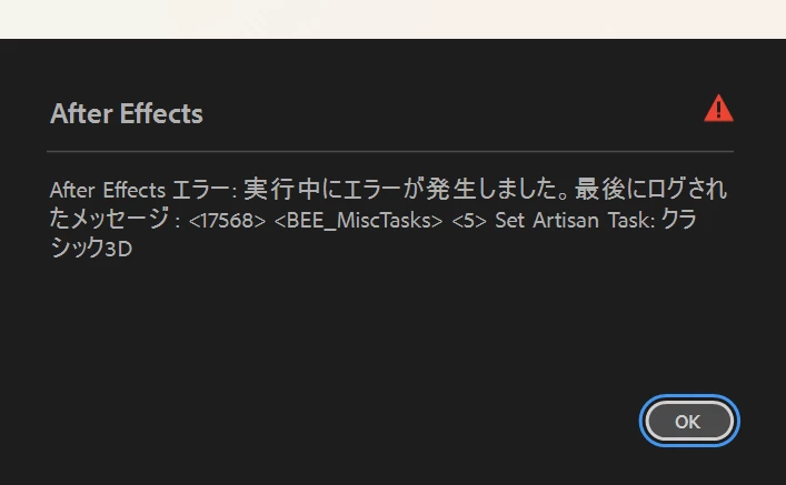 久しぶりに使用すると以下のエラーメッセージが出て、AEが使用できません。