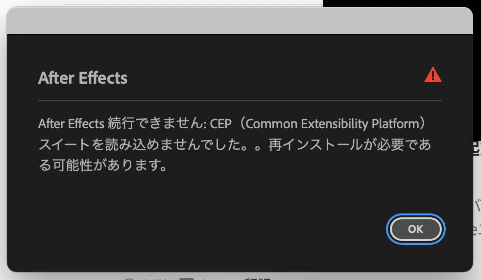 After Effect 25.0.1が起動できない (CEPスイートを読み込めませんでした)