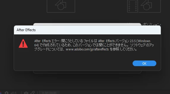 After Effectsの保存したファイルを開くことができません。