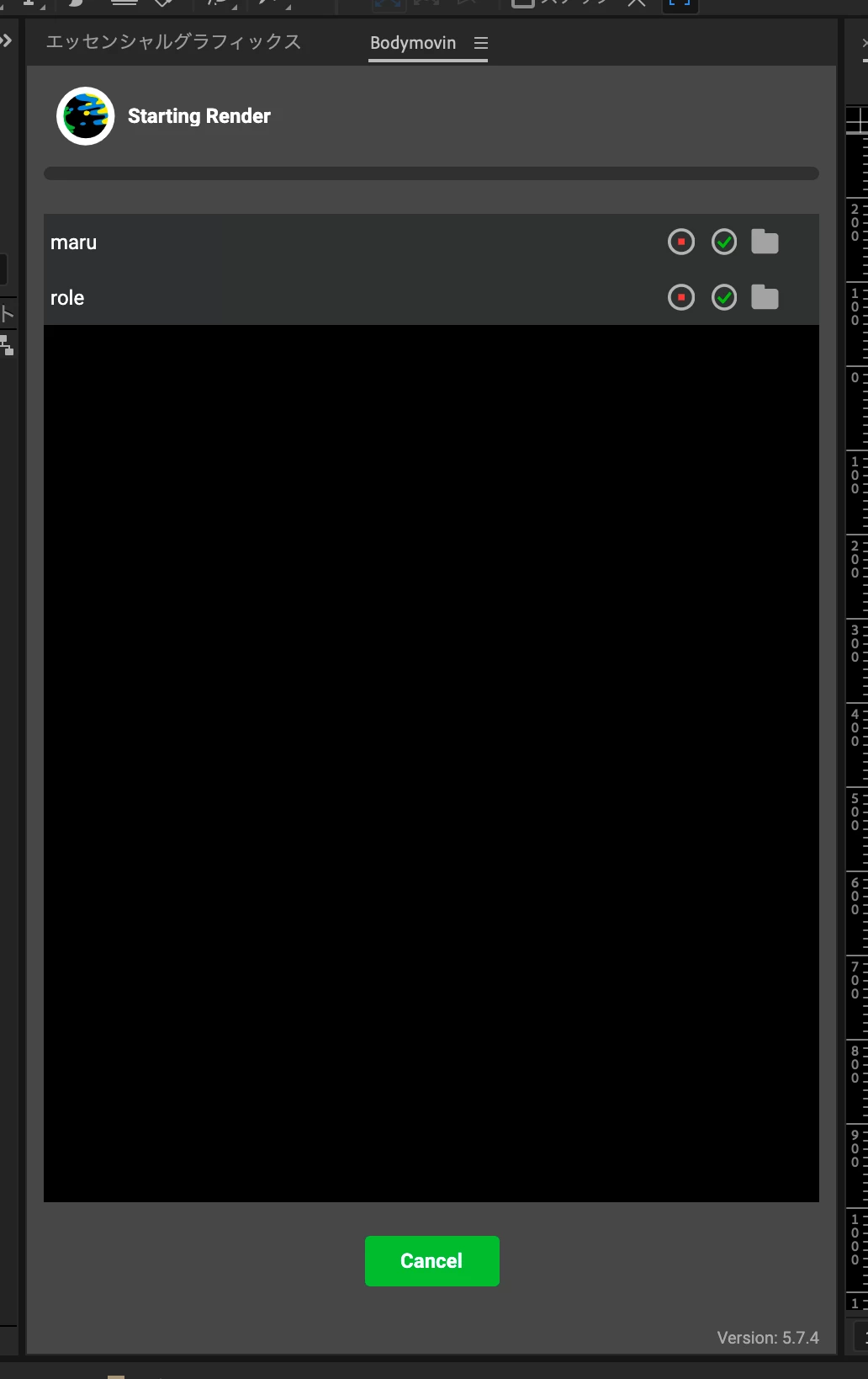 この画像の状態がずっと続いてて先に進まずちゃんとレンダリングができません。