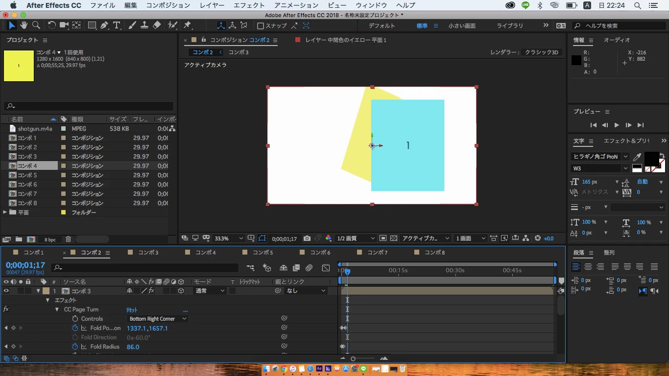 下記の動画を見ながらページがめくれる表現を練習しているのですが、上の図のように裏からめくれるような感じになってしまいます。