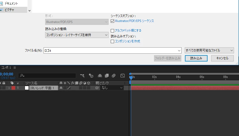 イラストレイヤーでレイヤーを分けたロゴを作成したがアフターエフェクトで読み込んでもレイヤー分けされない