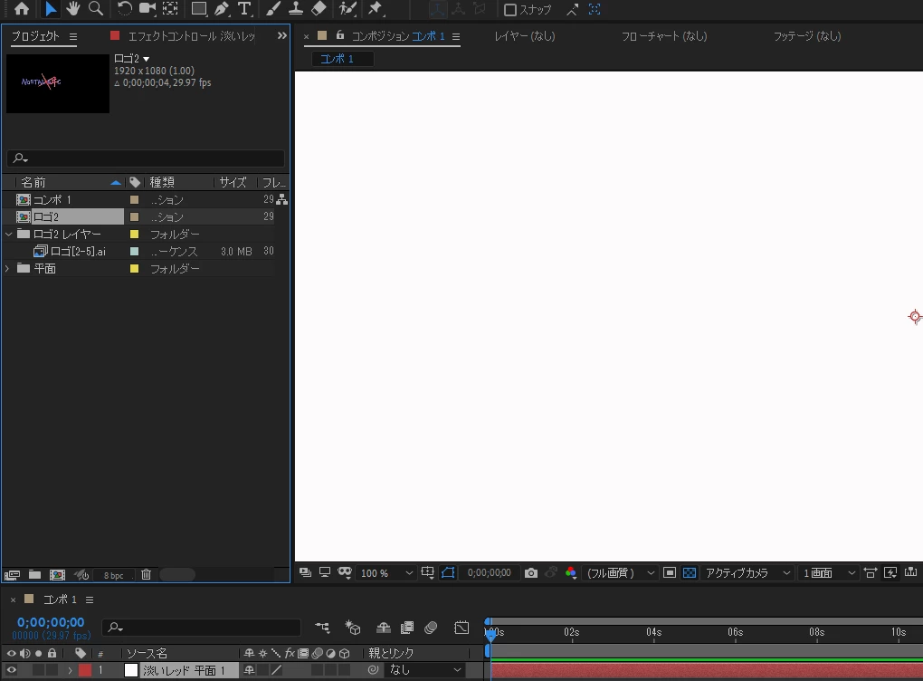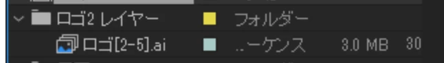 その後アフターエフェクトにてロゴにアニメーションを加えようと思いレイヤー分けしたデータをプロジェクトに置きました