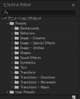 「エフェクト&プリセット」基本的なアニメーションプリセットが表示されない