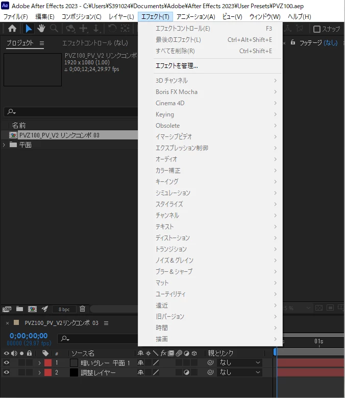 一方メニューバーの「エフェクト」の中には一般的なプリセットが見受けられます。