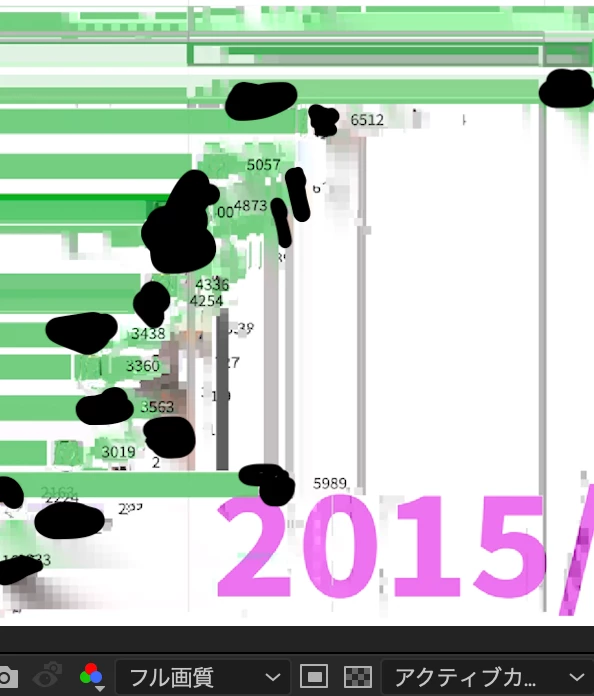 グラフが推移していく動画の素材において、動画を再生すると下の画像のようにブレてしまい黒い縦線が入ってしまいます。