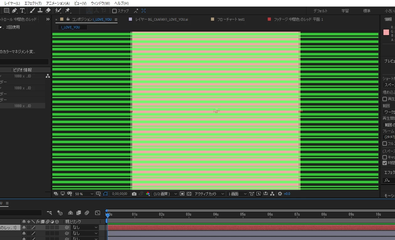 コンポジションパネルの表示がおかしい(緑色の横線が表示される)
