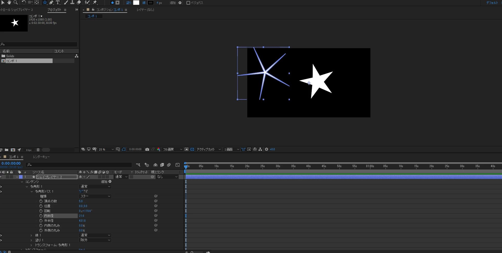 ・レイヤー/ 新規/ シェイプレイヤーを作成して、追加メニューで多角形を選ぶ。