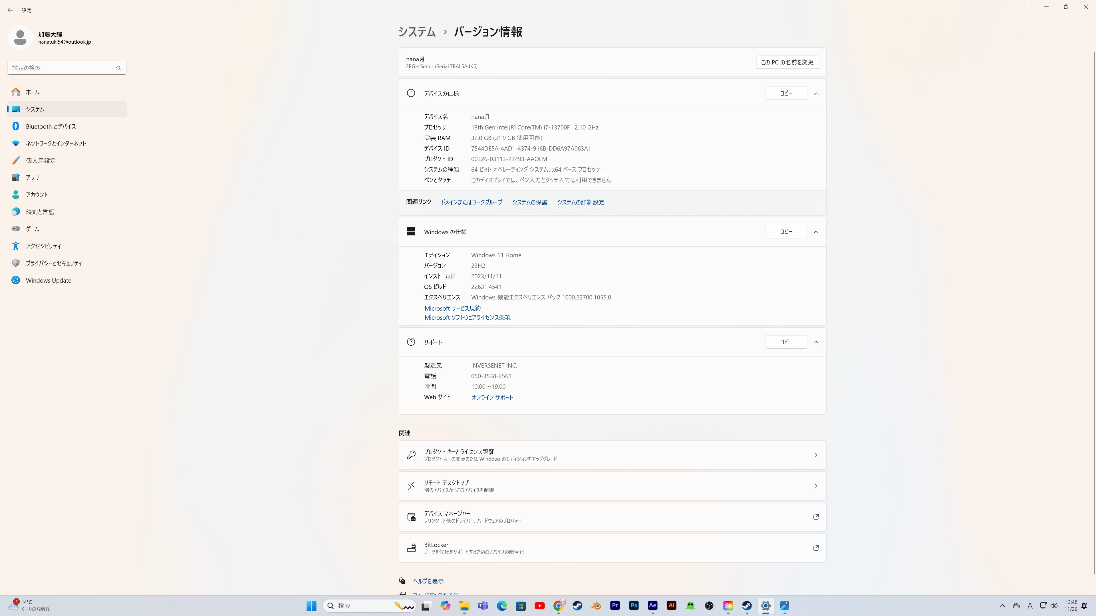 PCのスペックは画像の通りです