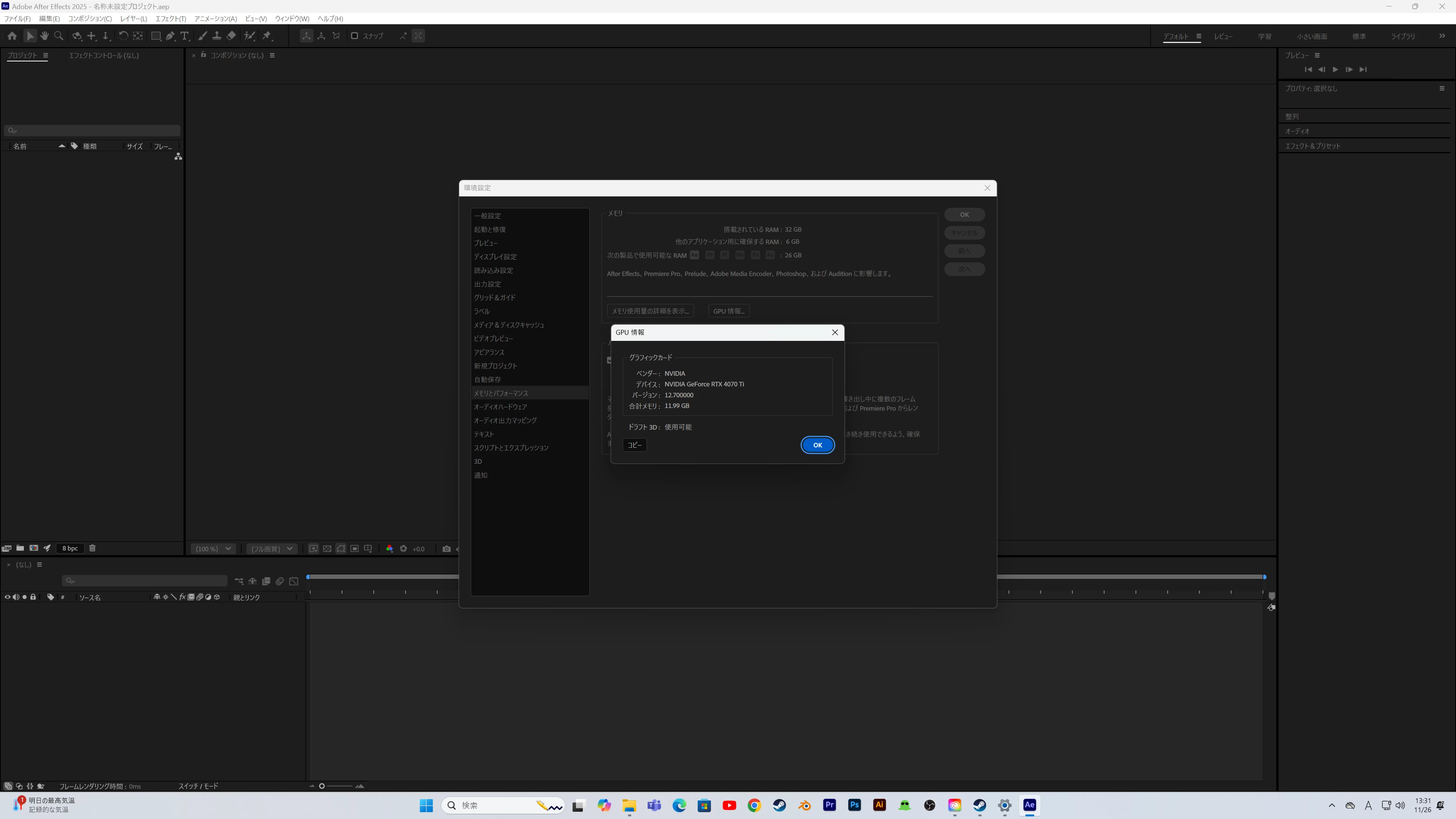 グラボも最新にアップデートし、Ae自体も2024.2025の両方環境設定を引き継がずにインストールしなおしましたが使えるようになりません。