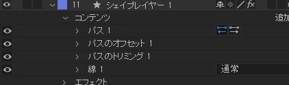 シェイプレイヤーにて、閉空間のパスを生成し、パスのトリミングでグルリと出現させる演出を作っています。