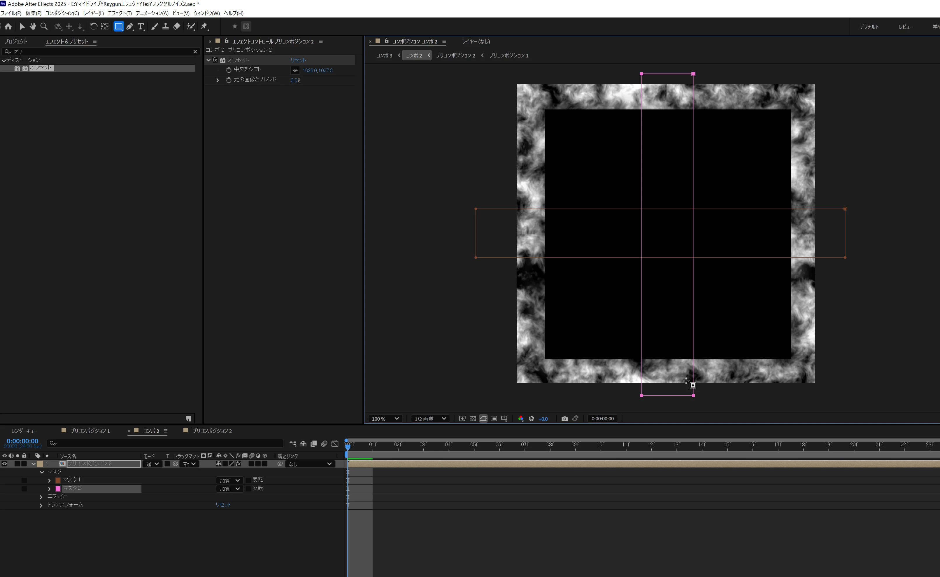 エフェクト「オフセット」が追加されて、中央をシフトの値が10260,10270が設定されているため、縦横にずれてスクリーンショットの画像になっています。