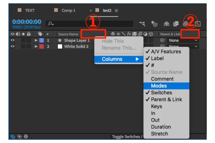 お探しの項目はModes(モード)だと思います。