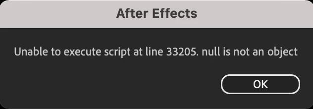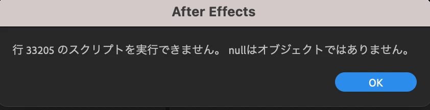 もしかすると英語版のAEでしか動かないのかなと思い、英語版で開こうとしたのですが、やはりエラーが現れました。