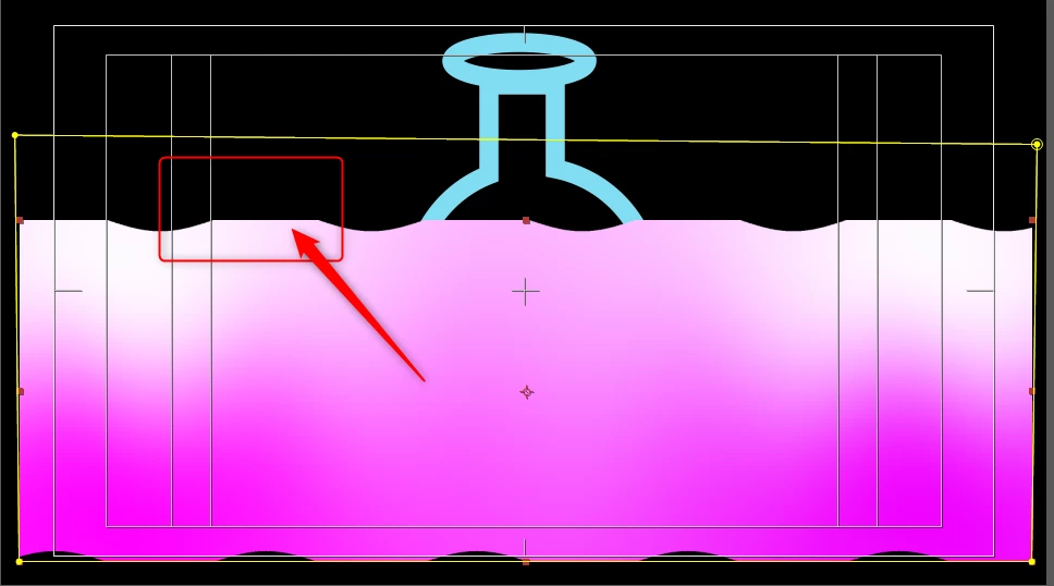 赤色の枠線の外に波の頂点が設定されているようで表示されず、不自然な波になってしまっています。