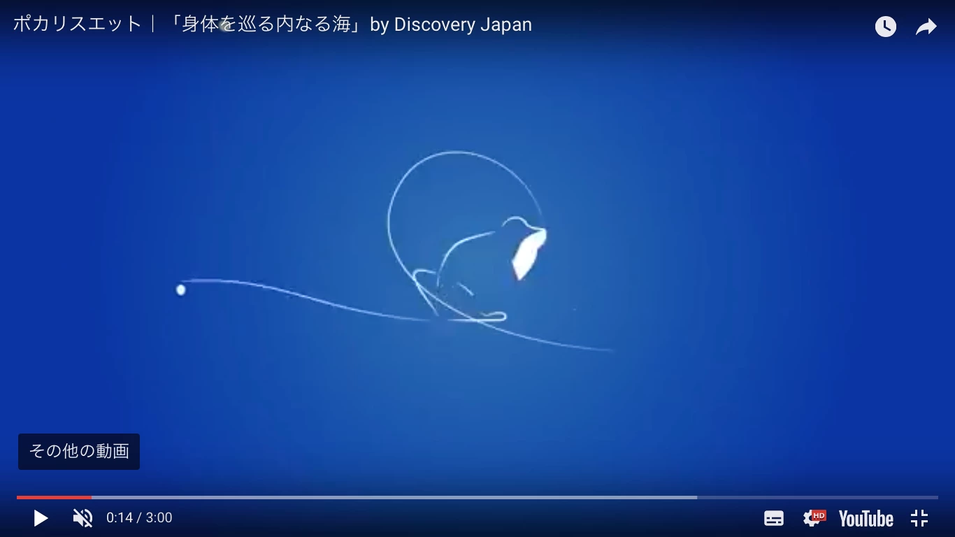 Illustratorを所有されておられないとのことなので参考ですが、ポカリの動画を見て当方が思いつく作成方法は、下記の通りです。