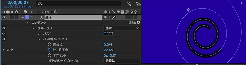 「パスのトリミング」の調整でアニメーションの時間を設定。