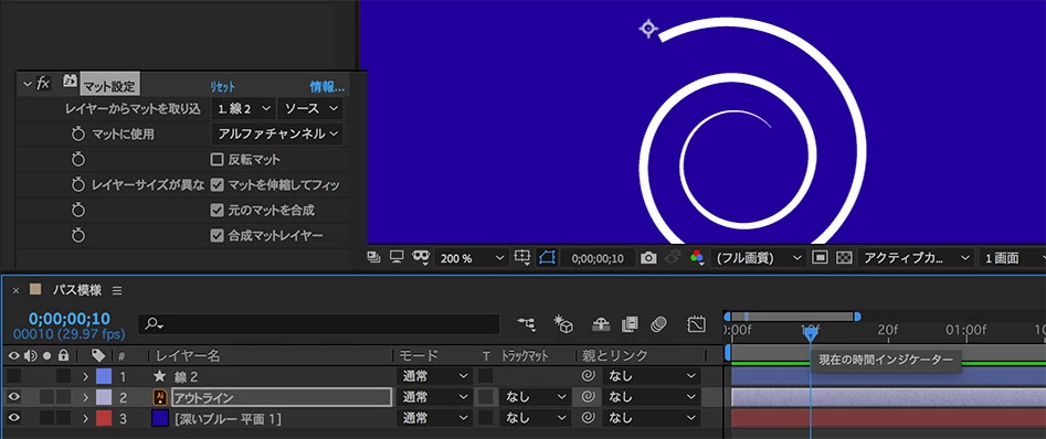 アウトラインのレイヤーに「マット設定」を適用して完成。