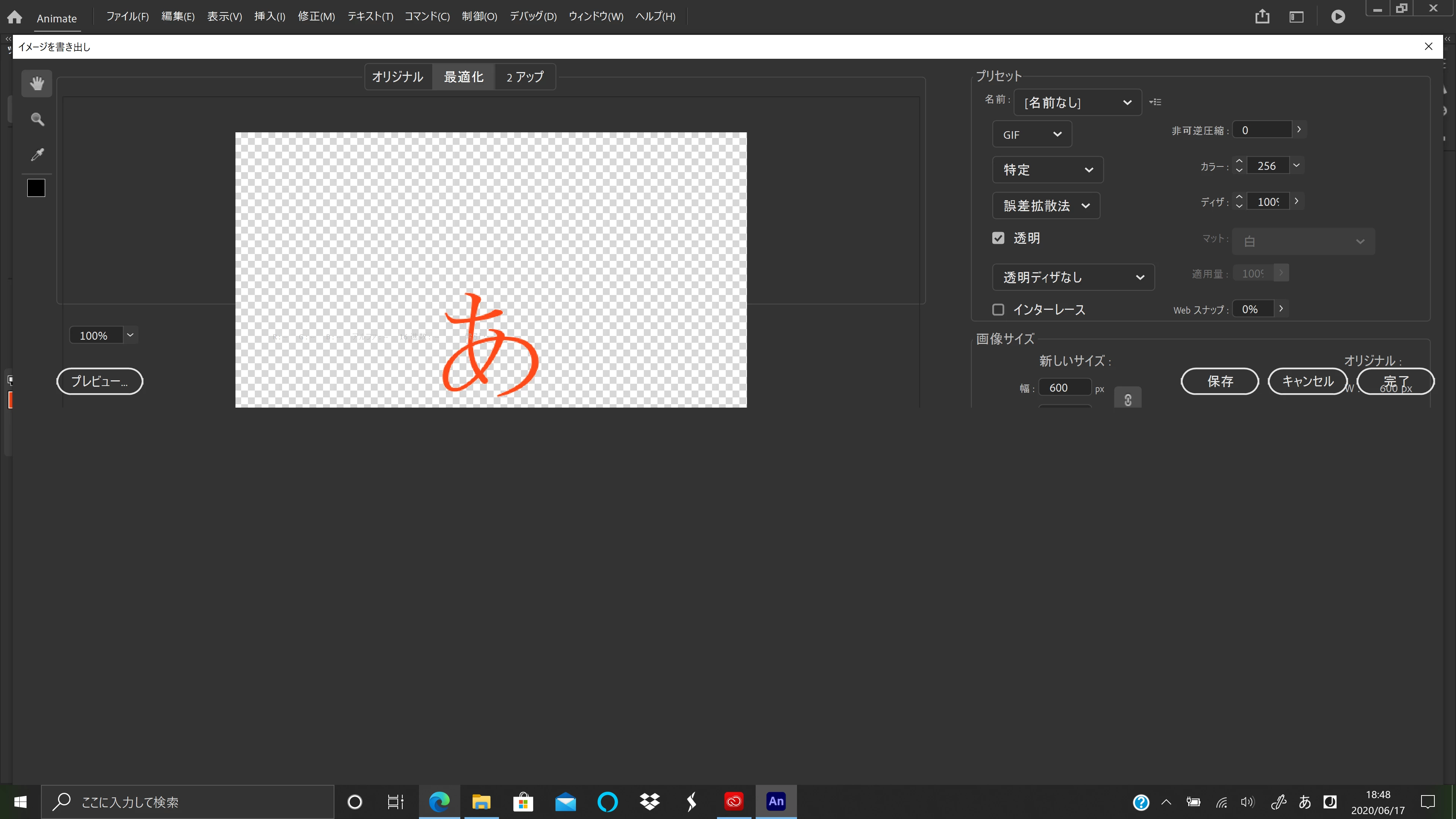 アニメーションGIFの書き出し画面が半分しか表示されません