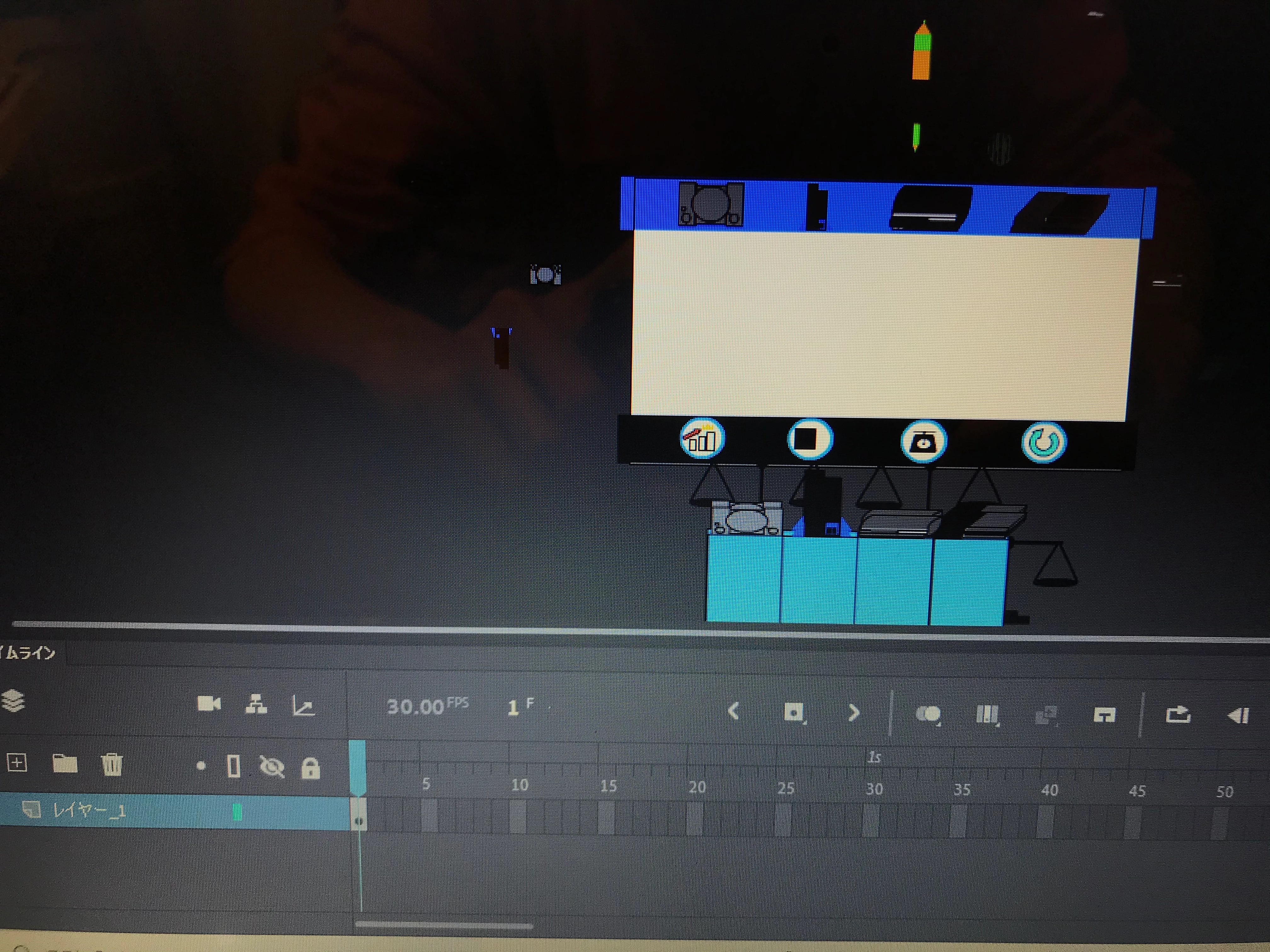 ※画面下の丸4つがボタンで、枠外のものがアニメーションが入ったムービークリップです。