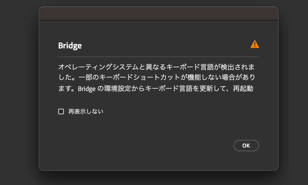 「環境設定 / 詳細設定 / インターナショナル」の言語とキーボードの設定が間違っていなければ「再表示しない」にチェックして無視してください。バグのようで間違っていなくても設定によっては表示されるようです。 バグとして報告してありますから今後修正されるはずです。