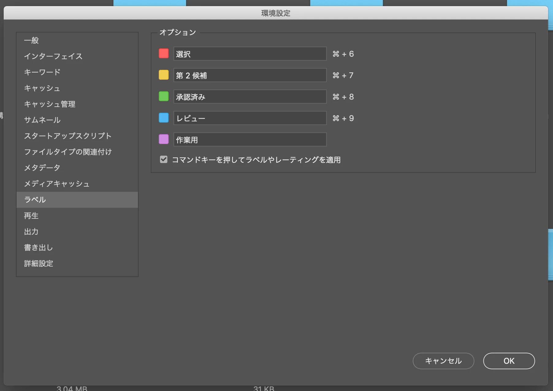 「環境設定」→「ラベル」の「コマンドキーを押して〜」の項目にチェックが入っているかを確認してみて下さい。
