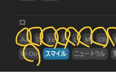 タイムラインには、「リップシンク オーディオ入力」の欄は全部同じ色の棒状で、その下の「口形素」は、いろいろな口の形が入っているようです。