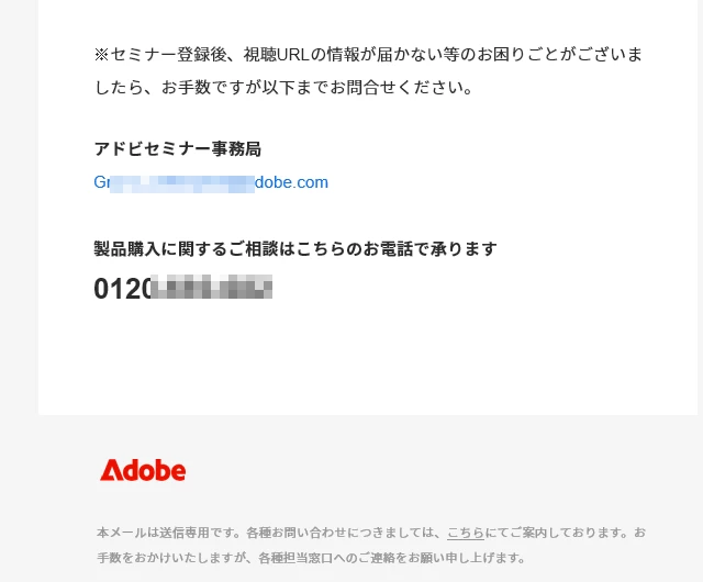 オンラインセミナー事務局の方へ問い合わせです。24年12月3日に法人向けCreativecloudセミナー