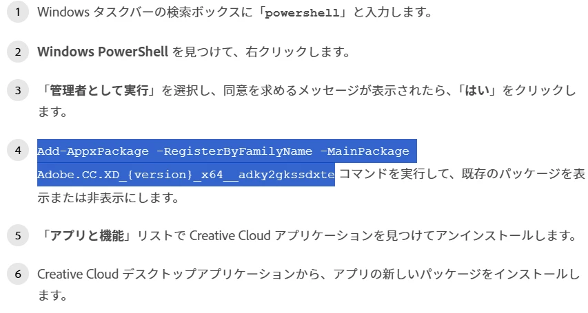 リポジトリに Adobe.CC.XD_adky2gkssdxte が見つからなかったため、RegisterByPackageFamilyName 操作を実行できません。Adobe.