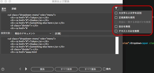 DW CC 2018 Mac版 検索・置き換え ヒットしない