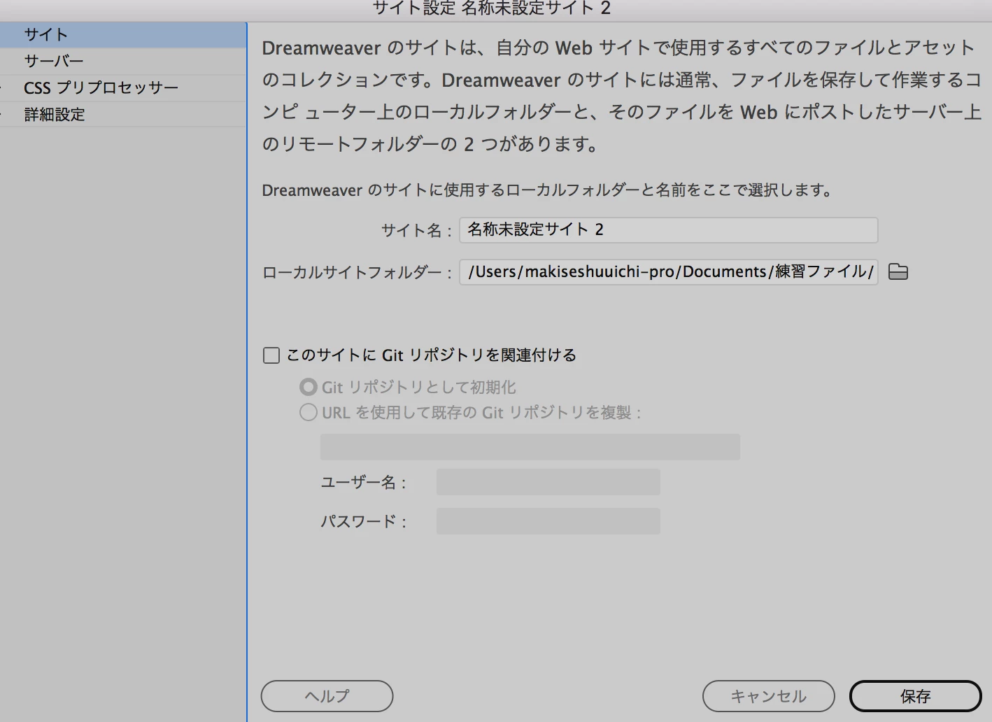 以下の画面の ローカルサイトフォルダーは空白では出来ませんので、どのように指定すると良いのでしょうか?