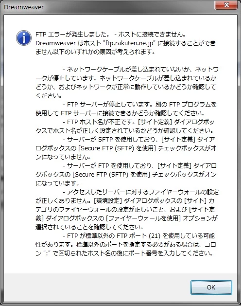 楽天GOLDのページにドリームウィバーを使ってアップロード(PUT)しているのですが、先週の19日や20日までは正常に作業できたのですが、
