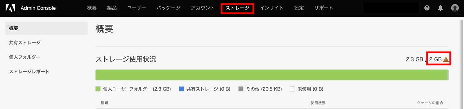 ・こちらの問題はあくまで Admin Console 上の表示の問題であり、「Adobe Express」の割り当てを行ったユーザーにおいては、ユーザー当たり2GBのストレージ利用には問題はありませんので、「Adobe Express」をユーザーに展開を行っていただくことに特に支障はございません。