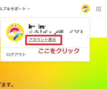 2. 右上のアカウントアイコンをクリックし、「アカウント表示」をクリック
